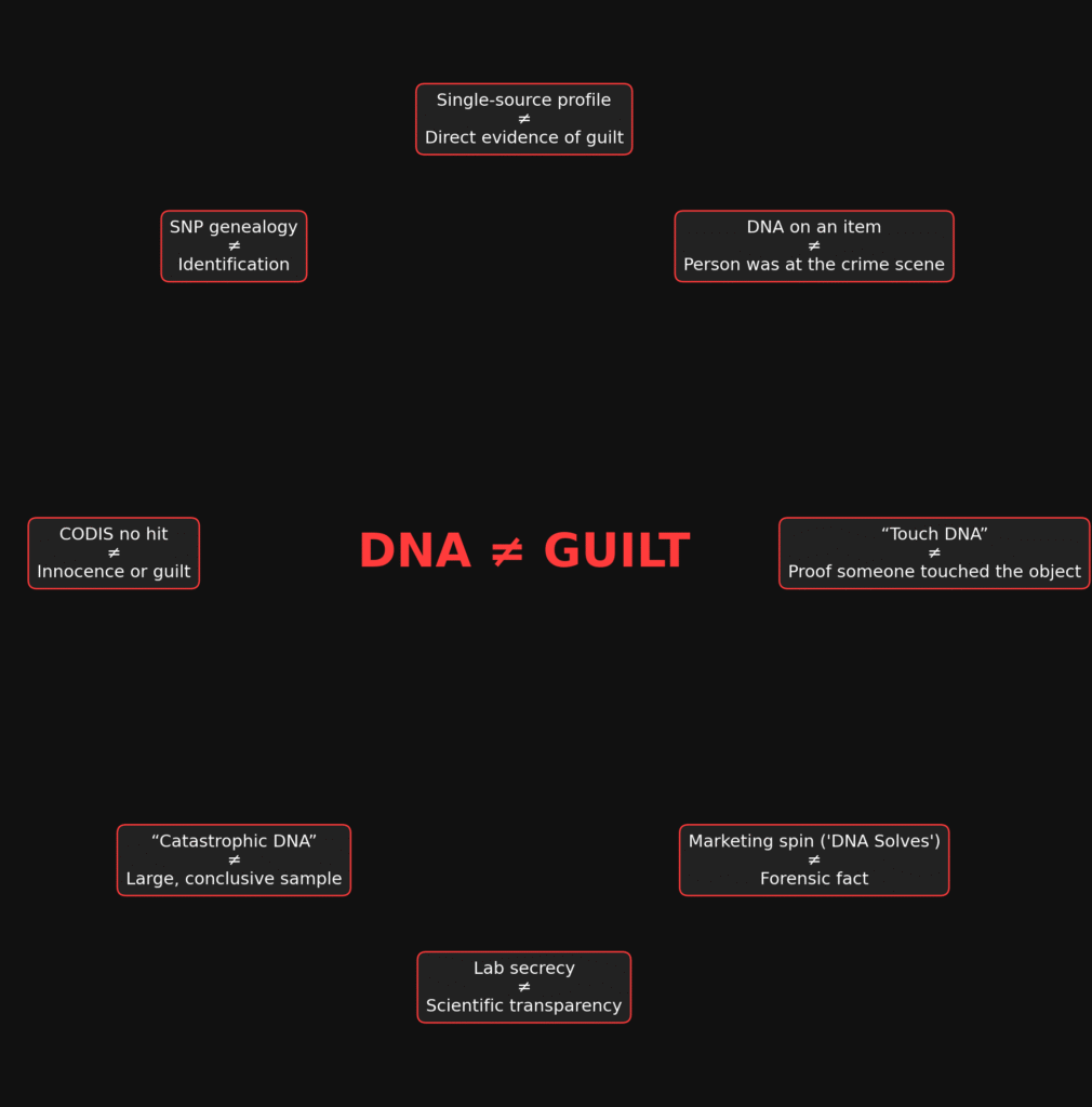 The danger here isn’t just one case. It’s how marketing and media spin can distort what forensic science actually means. By equating a microscopic, ambiguous DNA trace with absolute proof of guilt, the justice system risks wrongful accusations and convictions.
